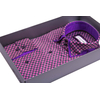 Стильная разноцветная мужская рубашка с высоким комбинированным двойным воротником. Внутренняя часть воротника, манжет и пуговичная планка отделаны дублирующей фиолетовой тканью.
