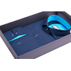 Стильная приталенная мужская рубашка с длинным рукавом. Французский воротник и зауженная талия. Внутренняя часть манжет, воротника и пуговичная планка отделаны бирюзовой тканью.