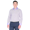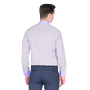 Модная приталенная мужская рубашка Venturo 22047-03 белого цвета в полоску с длинными рукавами и классическим сиреневым комбинированным воротником и манжетами из натуральной хлопковой ткани с добавлением полиэстера.
