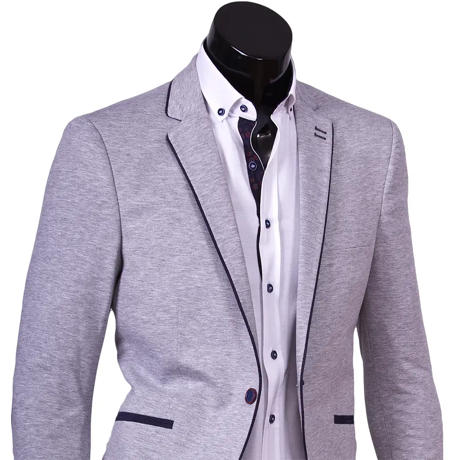 Этот серый непарный пиджак обязательно должен быть в гардеробе уверенного в себе и стильного мужчины. Контрастного цвета пуговицы, а также темная отделка по краю пиджака и карманов делают его оригинальным и интересным.