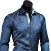 Благодаря контрастной светлой планке, сочетающейся с внутренней отделкой манжет и подобранными в цвет пуговицами, рубашка выглядит элегантно и оригинально. Продемонстрировать богатый декор можно, отвернув рукава и оставив расстегнутыми пару верхних пуговиц.