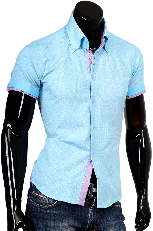 Голубая мужская рубашка с коротким рукавом и высоким воротником