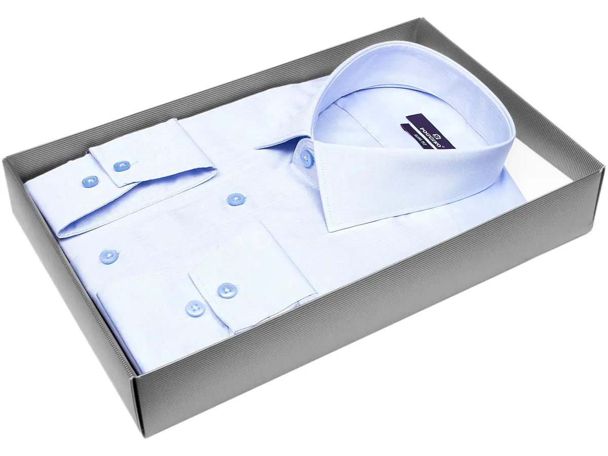 Голубая приталенная мужская рубашка Poggino 8004-021 Non Iron с длинными рукавами
