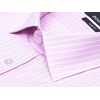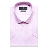 Летняя приталенная мужская рубашка Poggino 7001-34 розового цвета в полоску с классическим воротником и короткими рукавами из натуральной 100% хлопковой ткани.