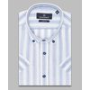 Приталенная мужская рубашка Poggino 7001-14 белого цвета в полоску с коротким рукавом и воротником баттен-даун из тонкой натуральной 100% хлопковой ткани.