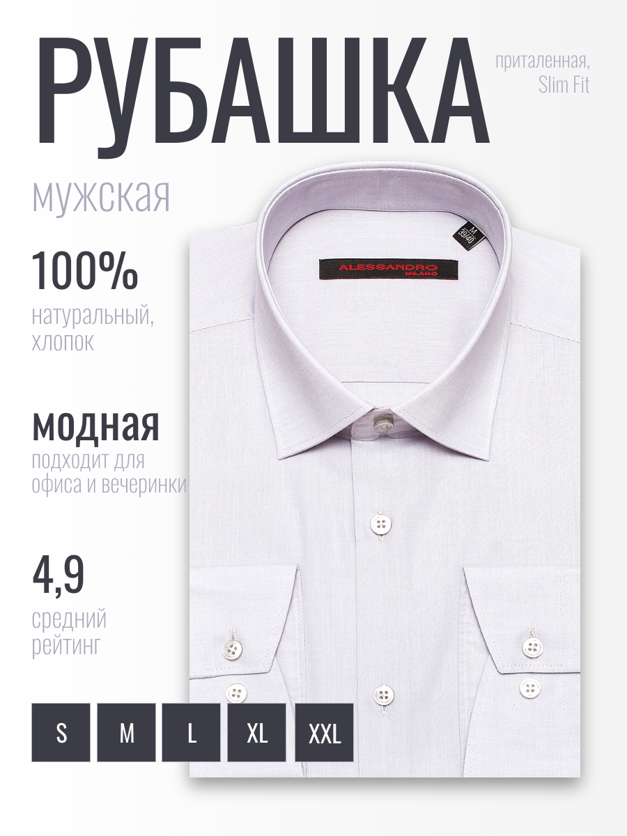 Приталенная мужская рубашка Alessandro Milano limited edition 2075-47 светло-серого цвета с длинными рукавами и классическим воротником из натуральной 100% хлопковой ткани.
