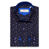 Темно-синяя приталенная рубашка в отрезках с длинными рукавами