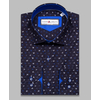 Приталенная мужская рубашка Louis Amava 3079-70 темно-синего цвета в отрезках с длинными рукавами и классическим воротником из натуральной хлопковой ткани с добавлением эластана (стрейч).