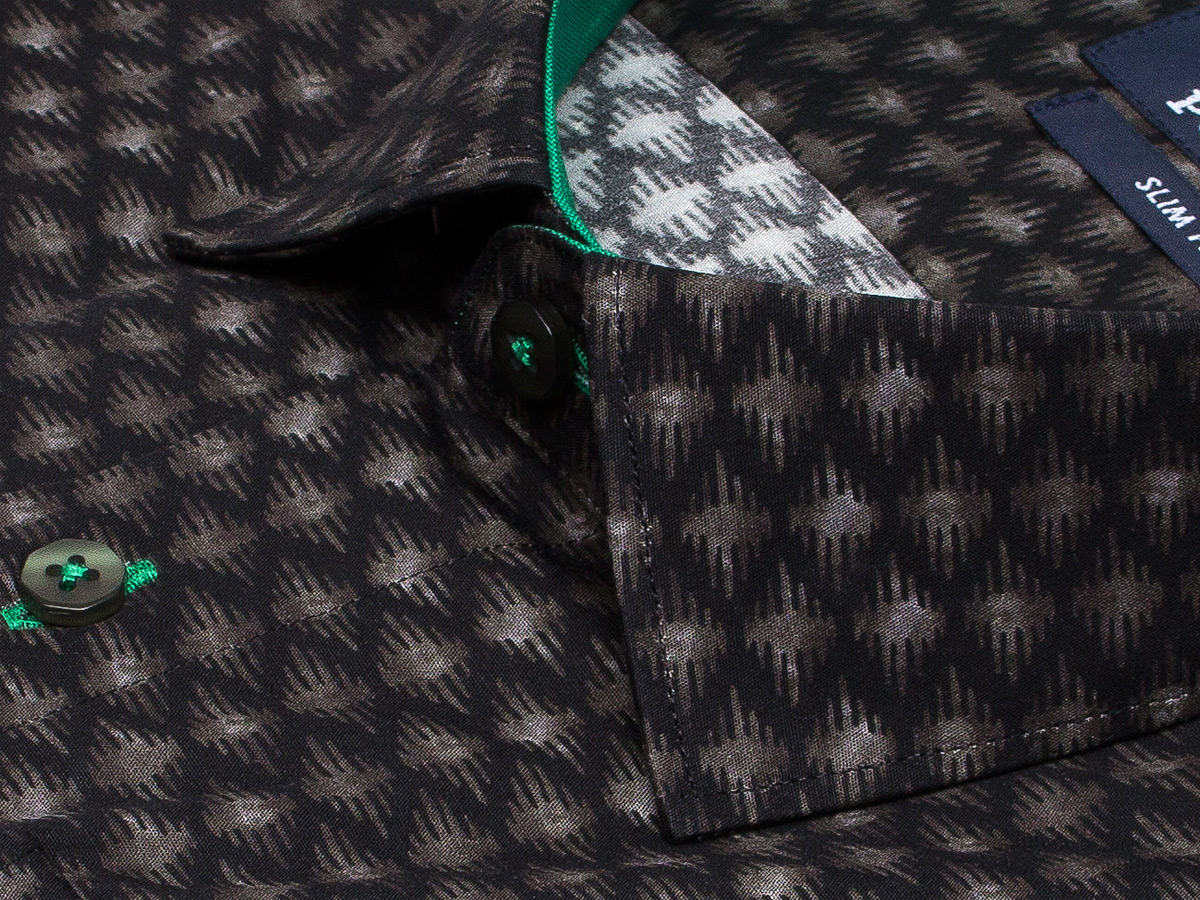 Черная приталенная рубашка в ромбах с длинными рукавами