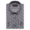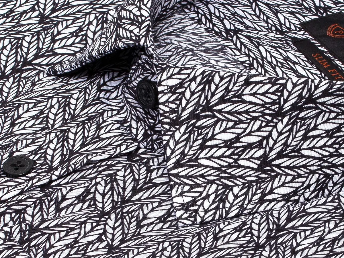Приталенная мужская рубашка Poggino 7000-43 черного цвета в листьях с длинными рукавами и классическим воротником из натуральной 100% хлопковой ткани.