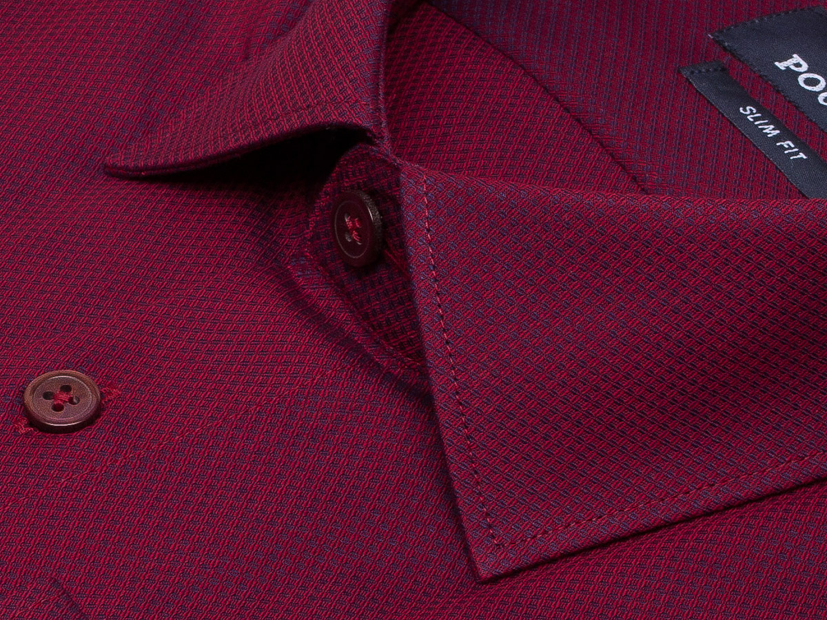 Приталенная мужская рубашка Poggino 5010-21 бордово-фиолетового цвета в клетку с длинными рукавами и классическим воротником из натуральной 100% хлопковой ткани.