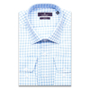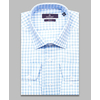 Приталенная мужская рубашка Poggino 7013-11 голубого цвета в клетку с длинными рукавами и классическим воротником из натуральной 100% хлопковой ткани.