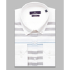 Белая комбинированная мужская рубашка в горизонтальную полоску с длинными рукавами