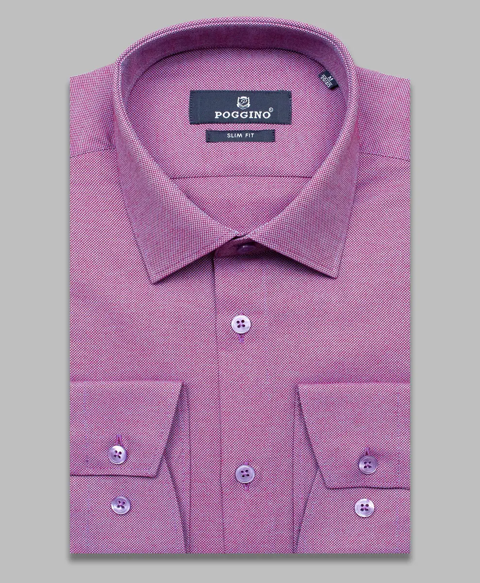 Приталенная мужская рубашка Poggino 5010-24 бордового цвета с длинными рукавами и классическим воротником из натуральной 100% хлопковой ткани.