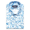 Разноцветная приталенная мужская рубашка Poggino 5010-11 в абстракции с длинными рукавами и классическим воротником из натуральной 100% хлопковой ткани.