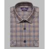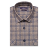Байковая приталенная мужская рубашка Poggino 7014-18 коричневого цвета в клетку с длинными рукавами, классическим воротником и двумя нагрудными карманами из натуральной 100% хлопковой ткани.