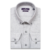 Байковая приталенная мужская рубашка Poggino 7014-16 серого цвета меланж с длинными рукавами и воротником баттен-даун из натуральной 100% хлопковой ткани.