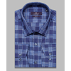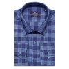 Приталенная мужская рубашка Poggino 7013-73 темно-синего цвета в клетку с длинными рукавами и классическим воротником из натуральной 100% хлопковой ткани.