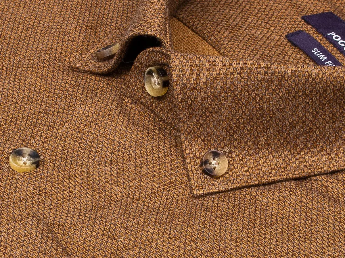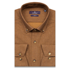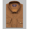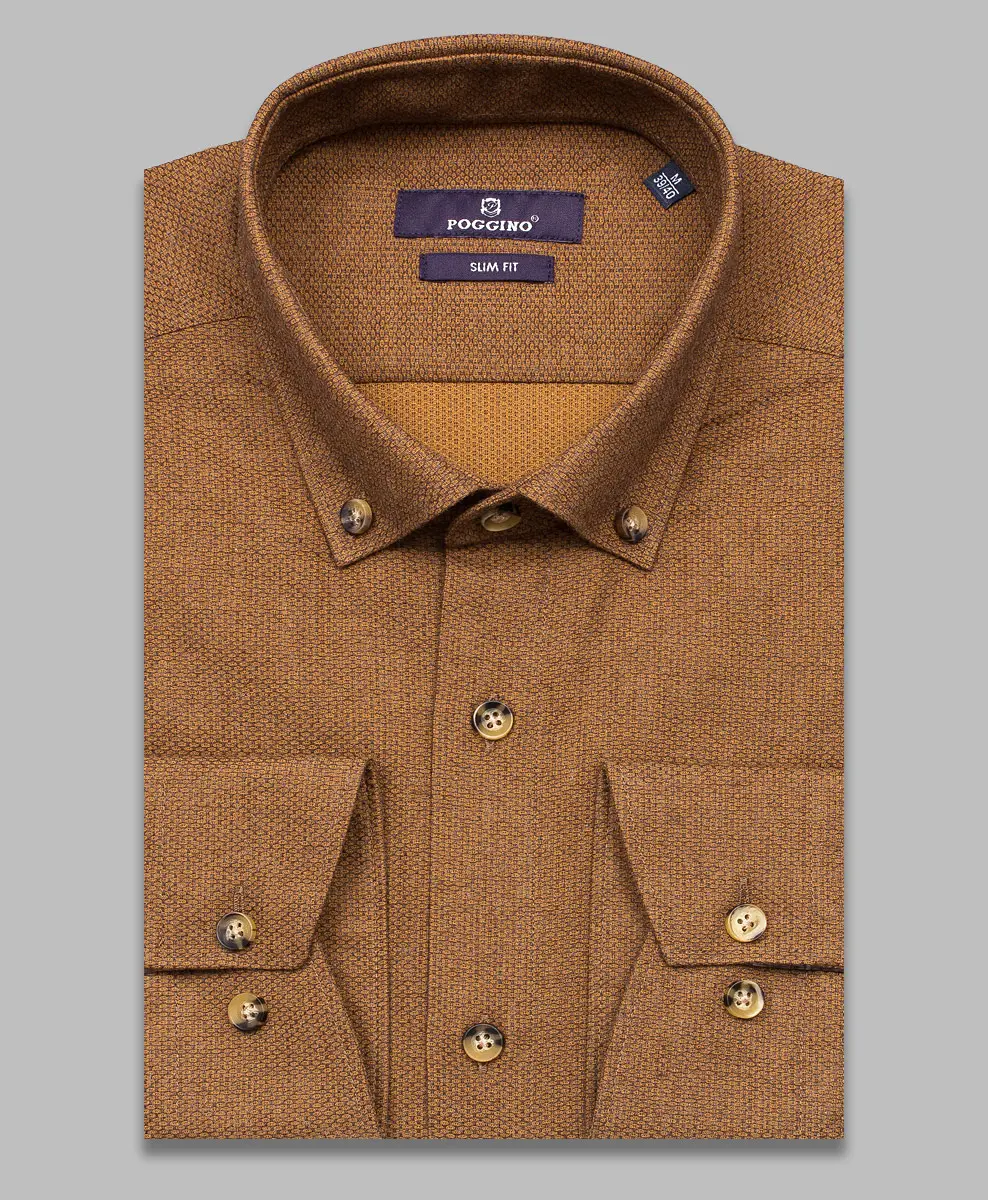 Приталенная мужская рубашка Poggino 7014-08 коричневого цвета меланж с длинными рукавами и классическим воротником из натуральной 100% хлопковой ткани.