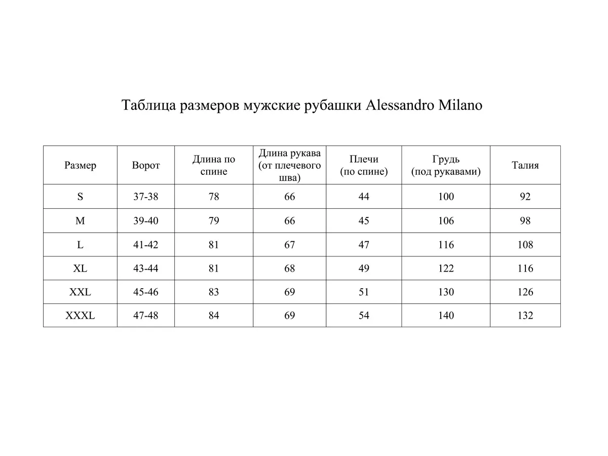 Таблица размеров мужские рубашки Alessandro Milano Limited Edition