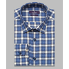 Синяя байковая приталенная мужская рубашка в клетку с длинными рукавами