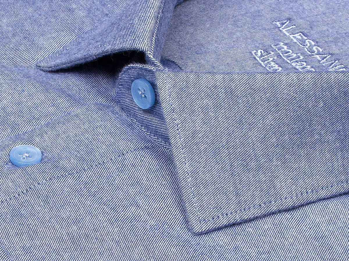 Байковая мужская рубашка Alessandro Milano 3210-06R светло-синего цвета меланж с длинными рукавами и классическим воротником из натуральной 100% хлопоковой ткани.