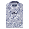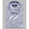 Приталенная мужская рубашка Poggino 5010-35 синего цвета в листьях с длинным рукавом и классическим воротником из натуральной 100% хлопковой ткани.
