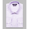Приталенная мужская рубашка Poggino 7014-28 сиреневого цвета в полоску с длинными рукавами и классическим воротником из натуральной 100% хлопковой ткани.
