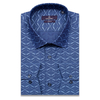 Синяя приталенная рубашка в узорах с длинным рукавом