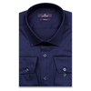 Приталенная мужская рубашка Poggino 70114-54 темно-синего цвета с длинными рукавами и классическим воротником из плотной натуральной 100% хлопковой ткани.