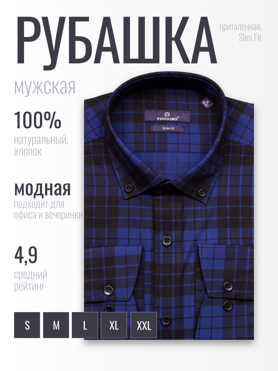 Мужская рубашка Poggino 7017-02 представляет собой приталенную модель темно-синего цвета с длинными рукавами и воротником баттен-даун. Изготовлена из 100% хлопковой ткани, что обеспечивает комфорт и долговечность.