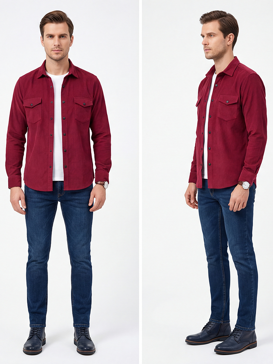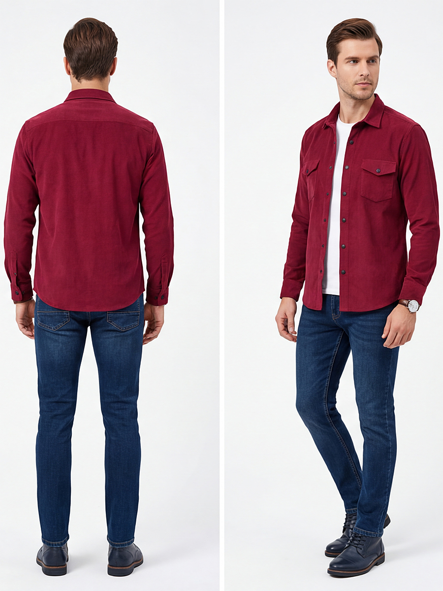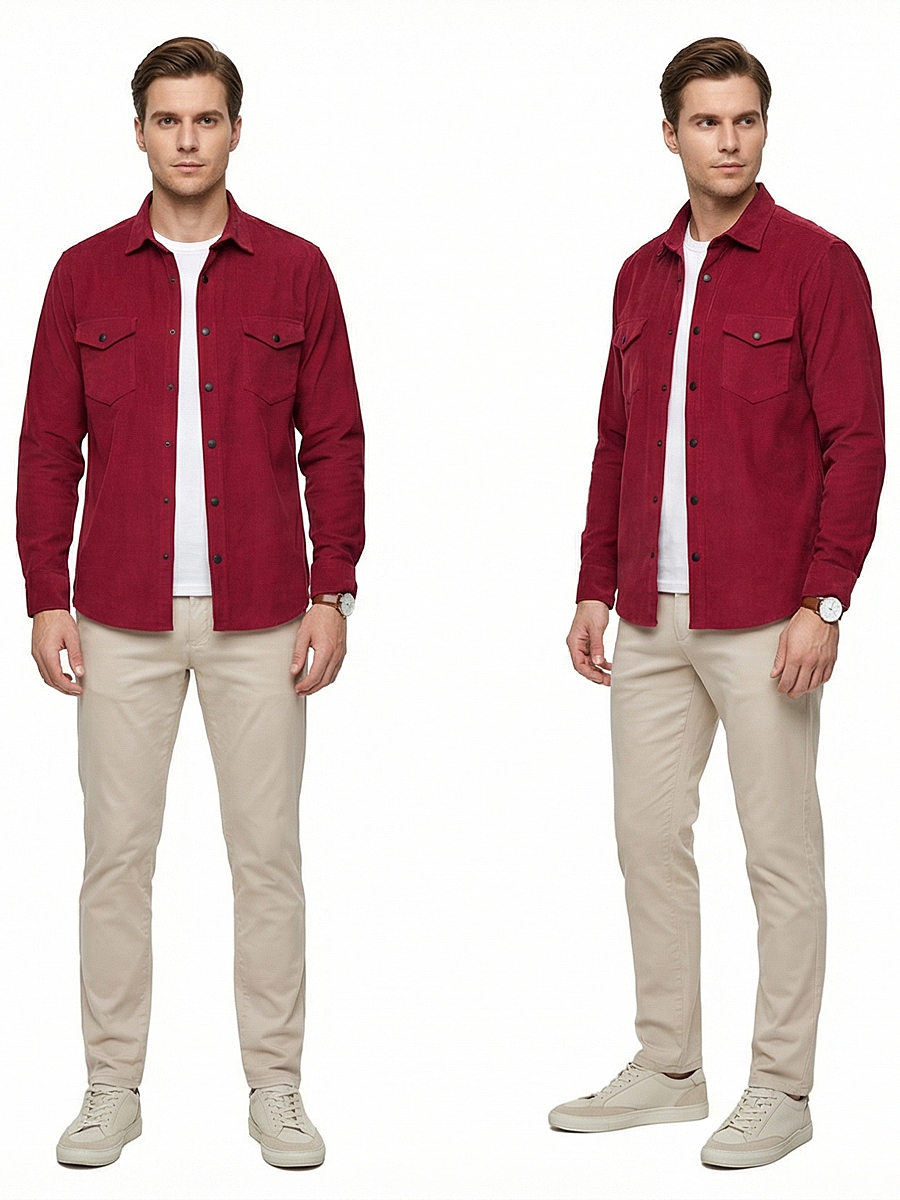 Рубашка выполнена из 100% хлопка, что обеспечивает максимальный комфорт при носке. Вельветовый материал приятен на ощупь и долговечен.