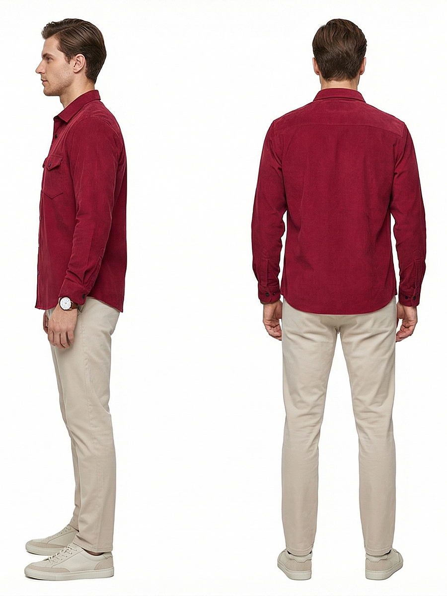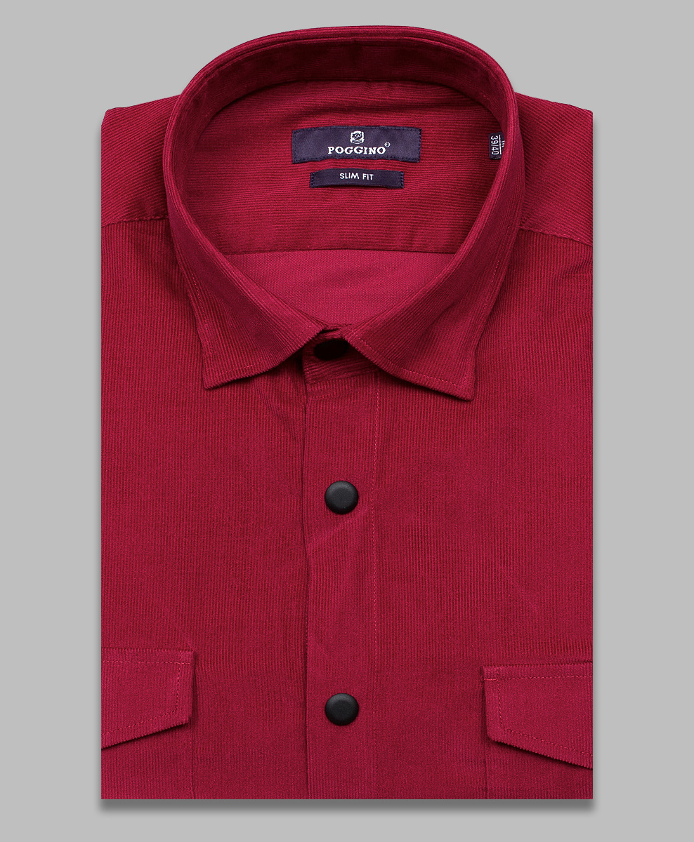 Бордовая вельветовая приталенная рубашка с длинными рукавами