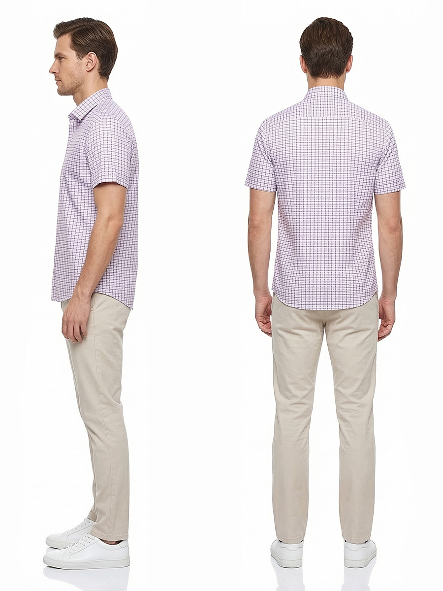 Сиреневая приталенная рубашка в клетку с коротким рукавом