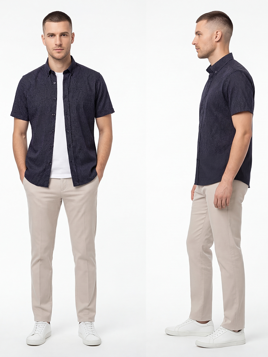 Приталенная мужская рубашка Poggino 7003-67 черного цвета в отрезках с короткими рукавами и классическим воротником из натуральной 100% хлопковой ткани. Рубашка изготовлена из 100% хлопка, что обеспечивает комфорт и долговечность. Хлопок - натуральный материал, который обладает хорошей воздухопроницаемостью и гигроскопичностью, что позволяет коже дышать и оставаться сухой. Воротник баттен-даун и короткие рукава придают рубашке элегантность и стиль. Рубашка имеет приталенный силуэт, что подчеркивает фигуру и делает образ более стильным. Пуговичная застежка обеспечивает удобство и надежность. Без карманов и манжет позволяет сосредоточиться на основных элементах дизайна. Принт в виде полоски придает рубашке современный и деловой вид. Рубашка подходит для всесезонного использования, что позволяет носить ее в любое время года. Выбирайте приталенную мужскую рубашку Poggino 7003-67 черного цвета в отрезках для стильного и комфортного образа на каждый день.Фотография рубашки в коробке не является публичной офертой, и используется производителем, только в качестве демонстрации изделия с данного ракурса.