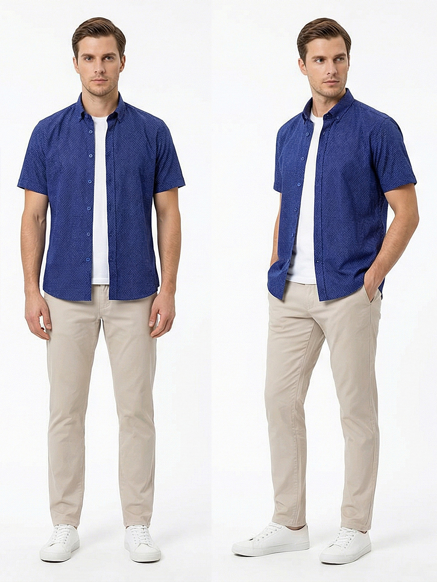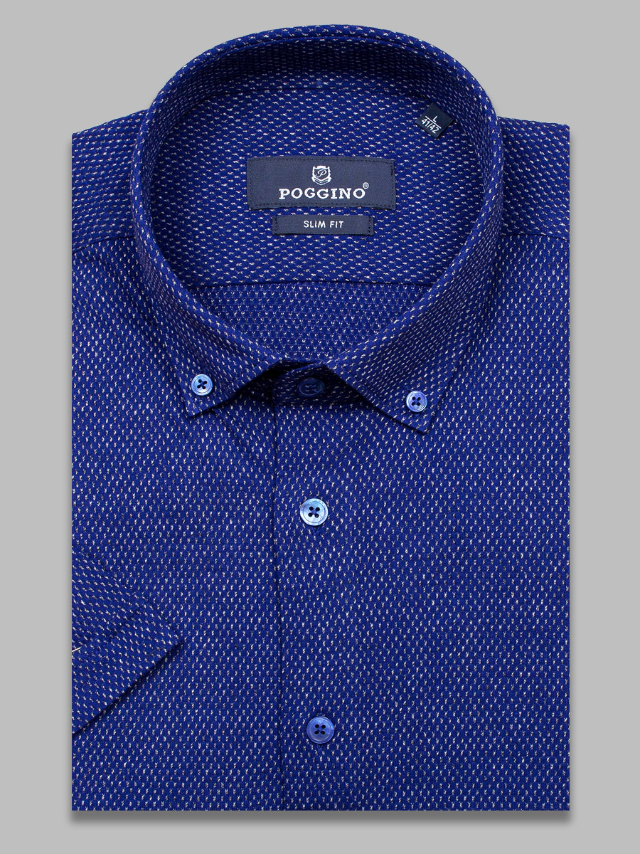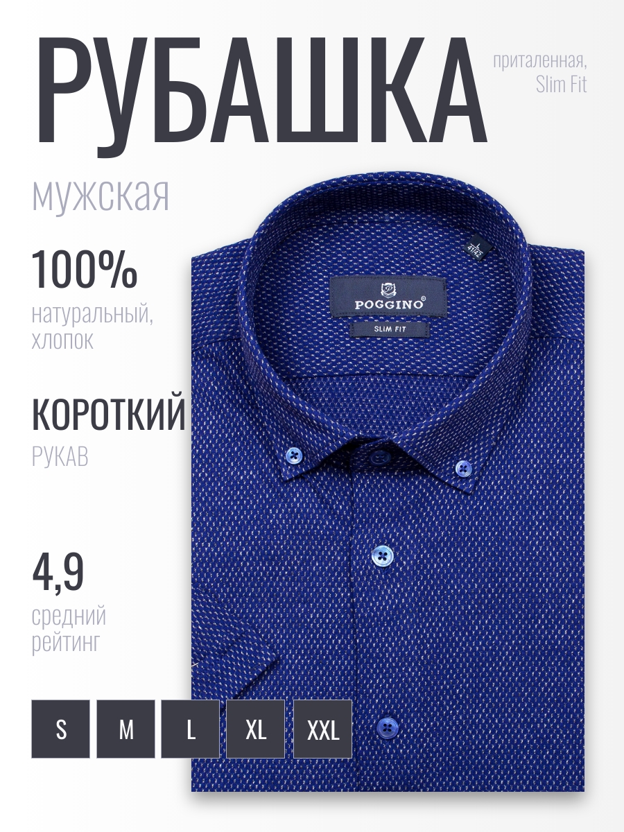 Приталенная мужская рубашка Poggino 7003-66 синего цвета в отрезках с короткими рукавами и классическим воротником из натуральной 100% хлопковой ткани. Рубашка изготовлена из 100% хлопка, что обеспечивает комфорт и долговечность. Хлопок - натуральный материал, который обладает хорошей воздухопроницаемостью и гигроскопичностью, что позволяет коже дышать и оставаться сухой. Классический воротник и короткие рукава придают рубашке элегантность и стиль. Рубашка имеет приталенный силуэт, что подчеркивает фигуру и делает образ более стильным. Пуговичная застежка обеспечивает удобство и надежность. Без карманов и манжет позволяет сосредоточиться на основных элементах дизайна. Принт в виде полоски придает рубашке современный и деловой вид. Рубашка подходит для всесезонного использования, что позволяет носить ее в любое время года. Выбирайте приталенную мужскую рубашку Poggino 7003-66 синего цвета в отрезках для стильного и комфортного образа на каждый день.Фотография рубашки в коробке не является публичной офертой, и используется производителем, только в качестве демонстрации изделия с данного ракурса.