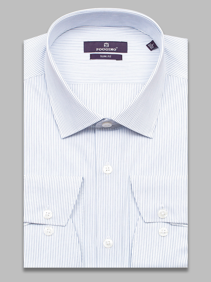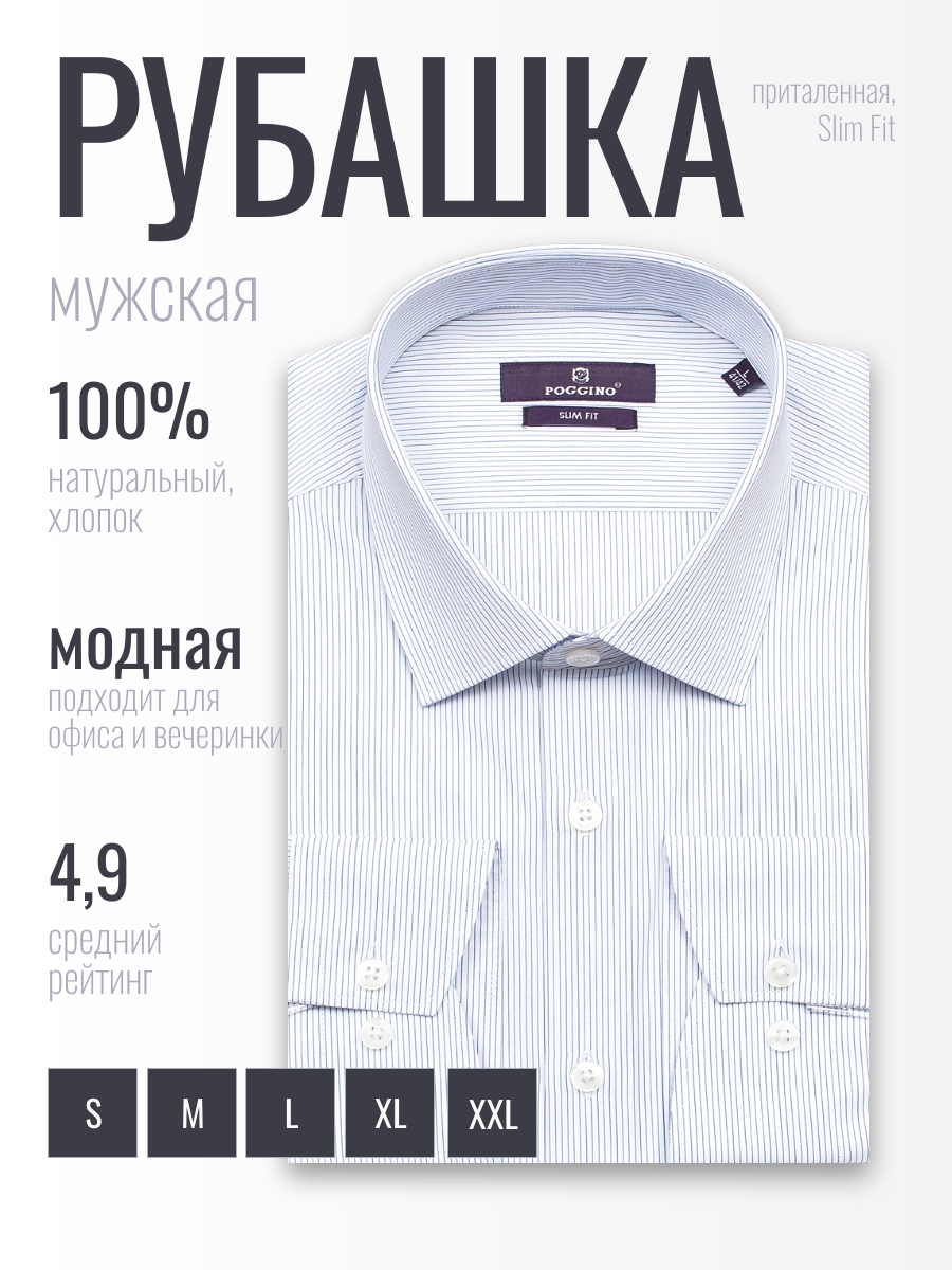 Приталенная мужская рубашка Poggino 7018-20 белого цвета в полоску с длинными рукавами и классическим воротником из натуральной 100% хлопковой ткани. Рубашка выполнена из 100% хлопка, что обеспечивает максимальный комфорт и долговечность. Хлопок является натуральным и гипоаллергенным материалом, который подходит для людей с чувствительной кожей. Классический воротник и длинные рукава создают элегантный и стильный образ. Отсутствие декора и принта позволяет рубашке выглядеть строго и официально. Рубашка имеет приталенный силуэт, который подчеркивает фигуру и делает образ более мужественным. Застежка на пуговицах обеспечивает надежное крепление и удобство в использовании. Рубашка подходит для мужчин с обхватом талии от 90 до 93 см и обхватом груди от 106 до 109 см. Размер на бирке указан как XL (43-44 см). Выбирая рубашку Poggino 7018-20, вы получаете качественный и стильный продукт, который прослужит вам долгое время и станет незаменимым элементом вашего гардероба.Фотография рубашки в коробке не является публичной офертой, и используется производителем, только в качестве демонстрации изделия с данного ракурса.