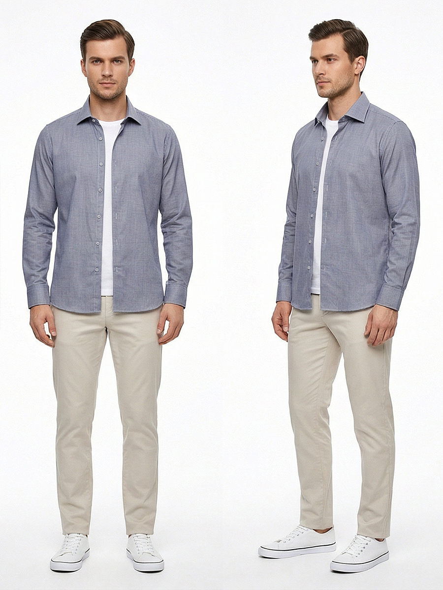 Силуэт рубашки прилегающий, что обеспечивает отличную посадку и комфорт при носке.