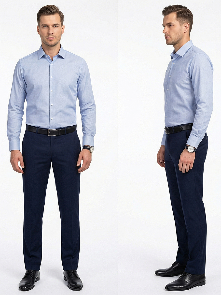 Силуэт рубашки прилегающий, что обеспечивает отличную посадку и комфорт при носке.