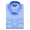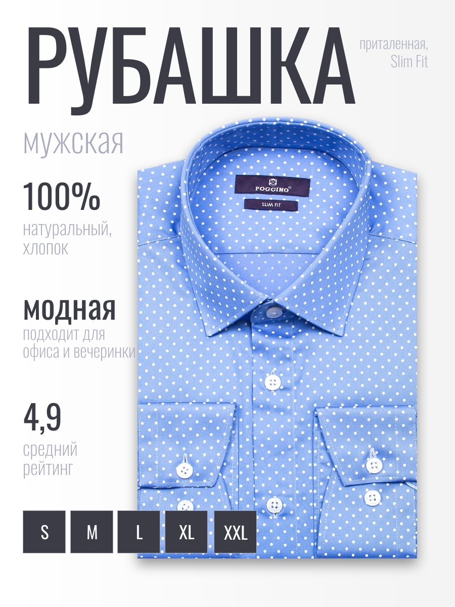 Приталенная мужская рубашка Poggino 7014-39 синего цвета в полоску и горошек с длинными рукавами и классическим воротником из натуральной 100% хлопковой ткани.