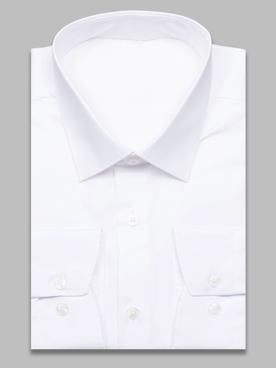 Приталенная мужская рубашка Poggino 8002-06 Non Iron белого цвета с длинными рукавами и классическим воротникоми из натуральной 100% хлопковой ткани.