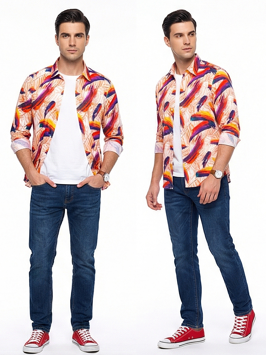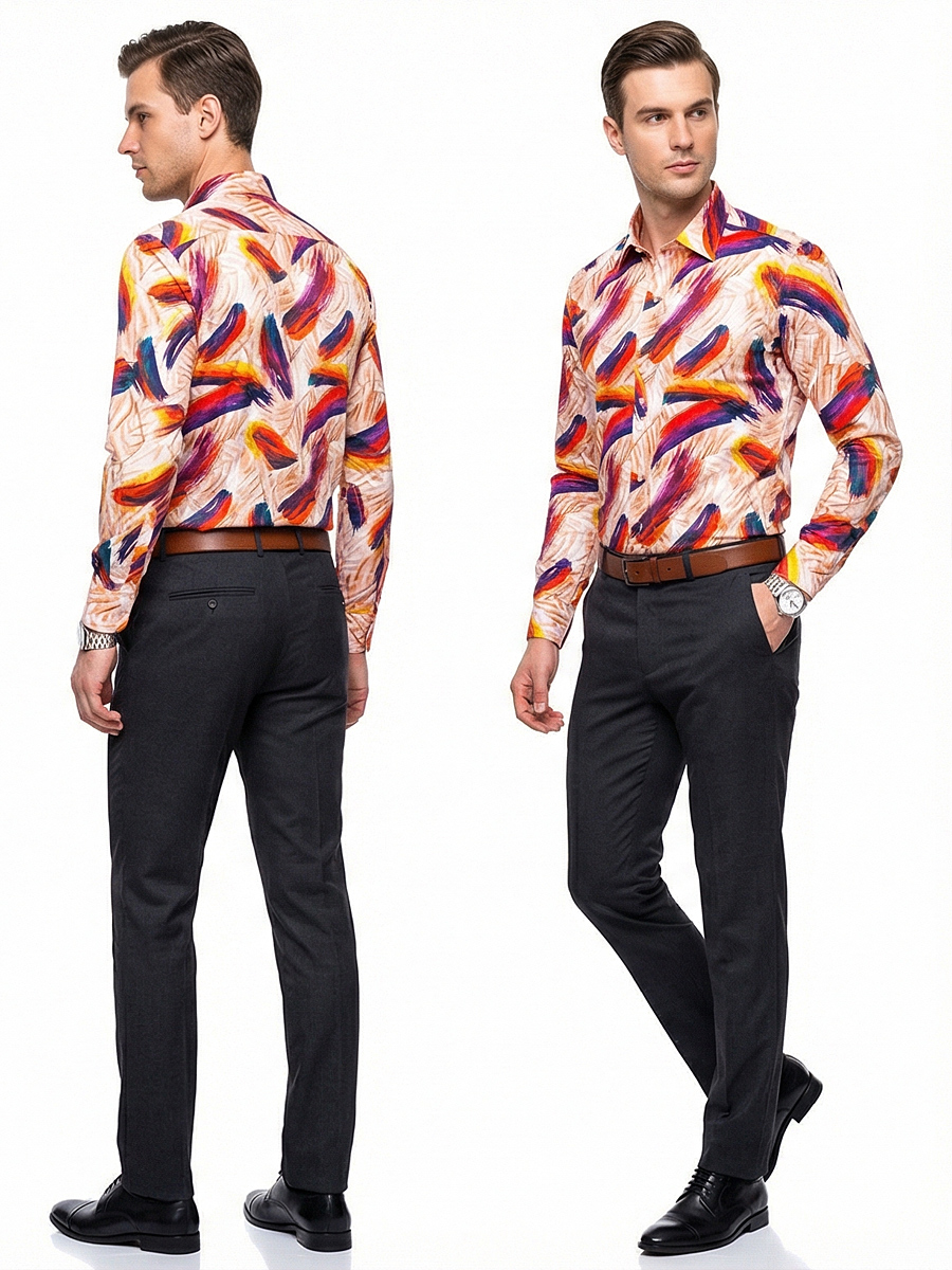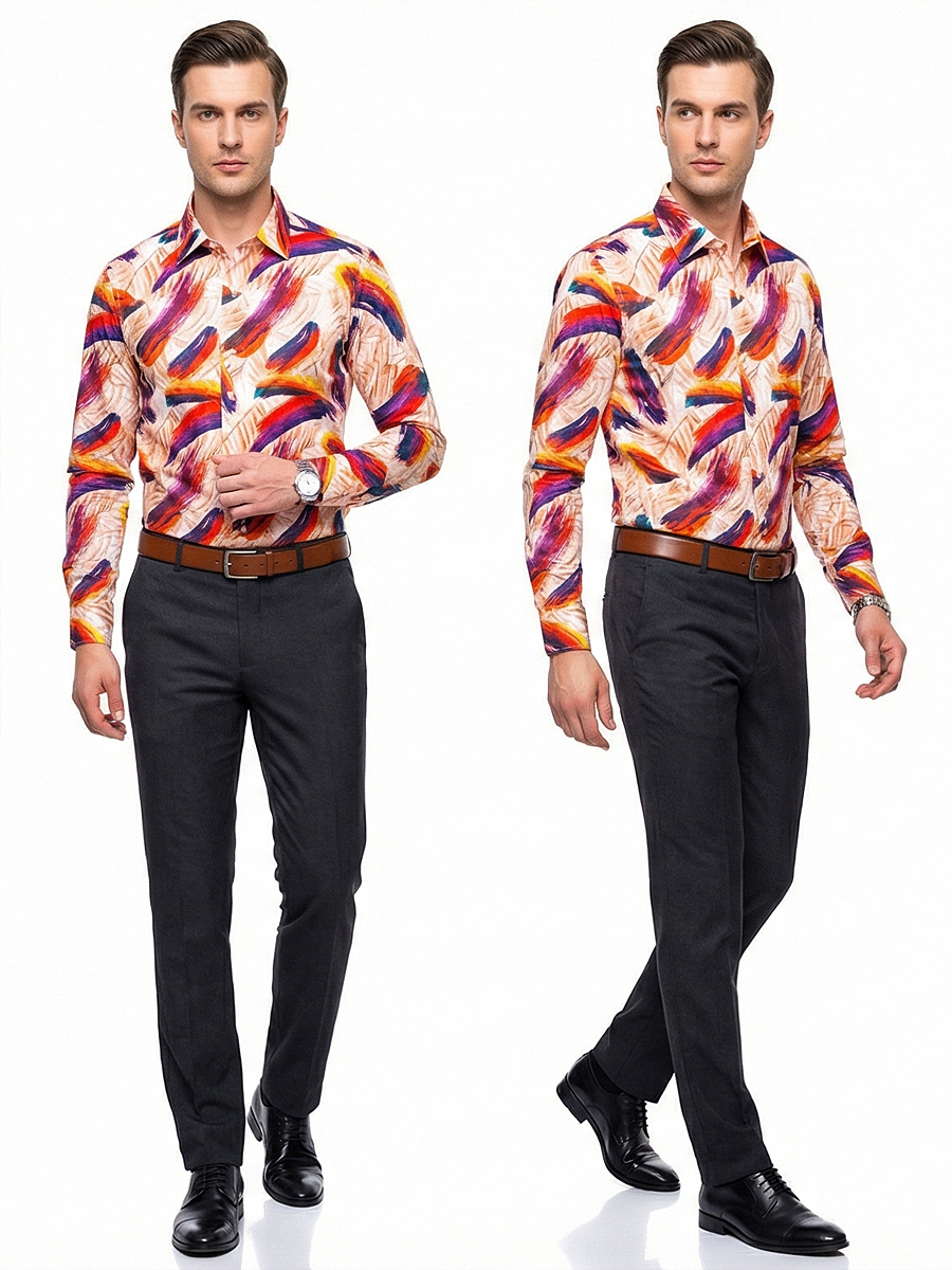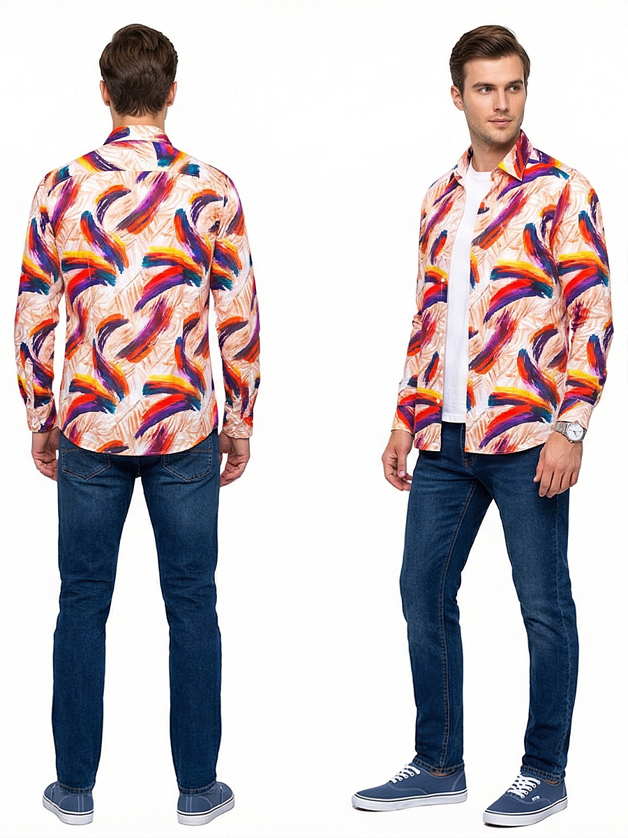 Разноцветная приталенная рубашка в абстракции с длинными рукавами