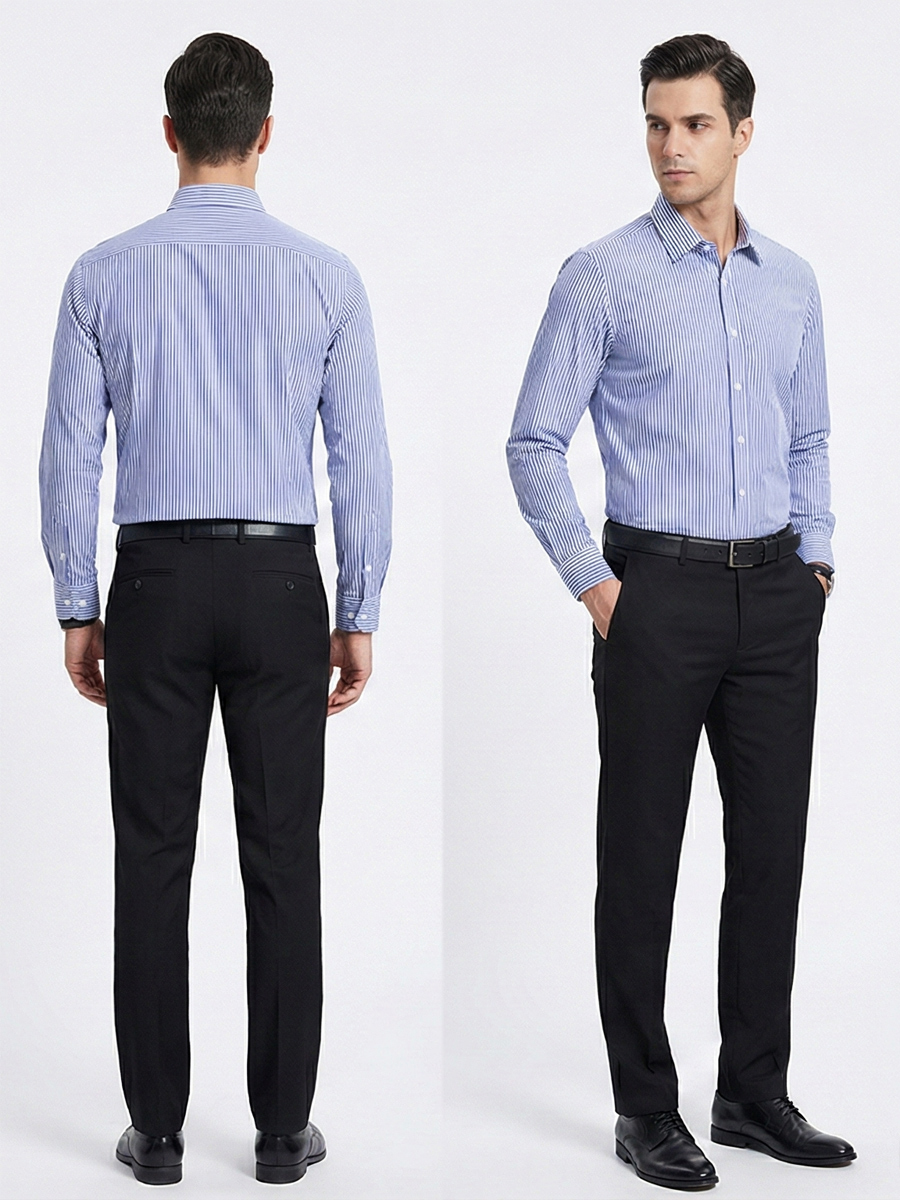 Синяя мужская рубашка Non Iron в полоску с длинными рукавами