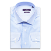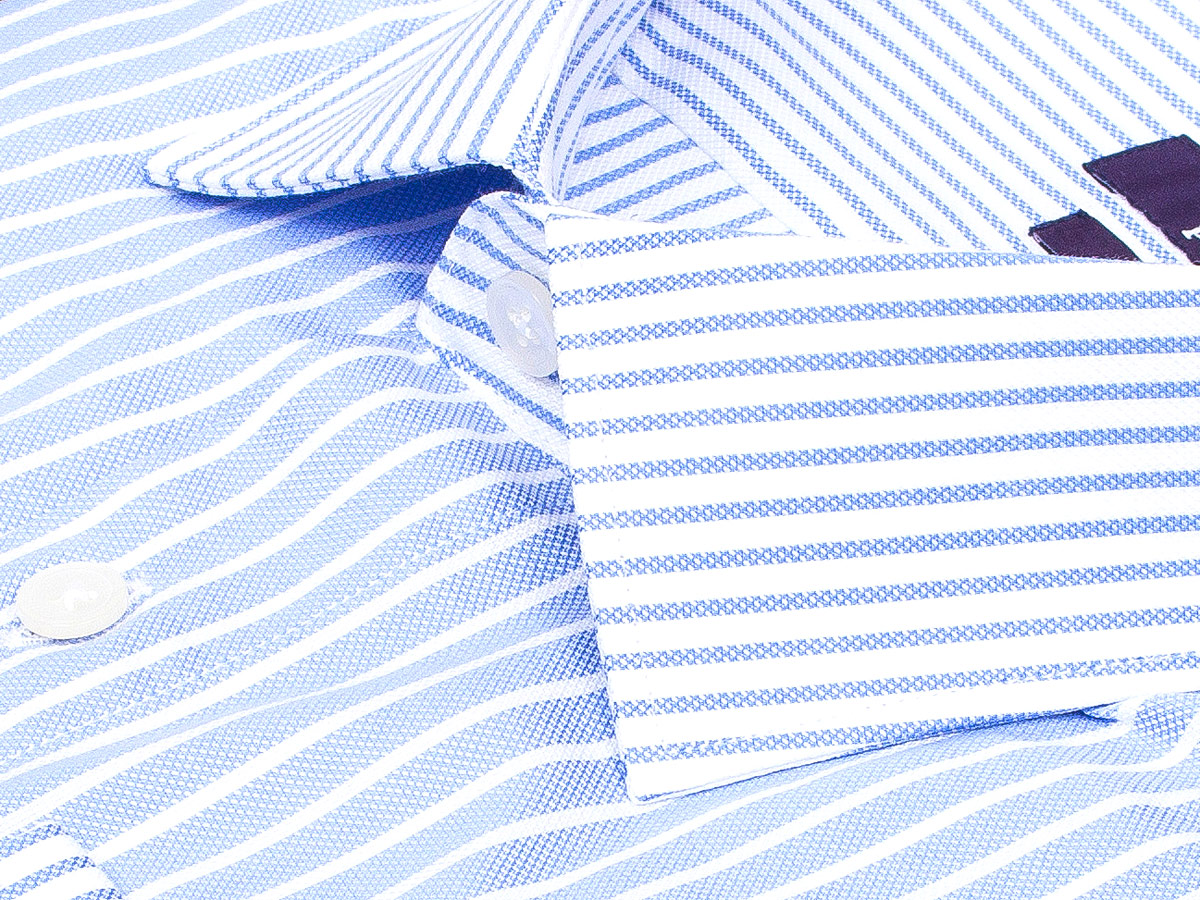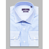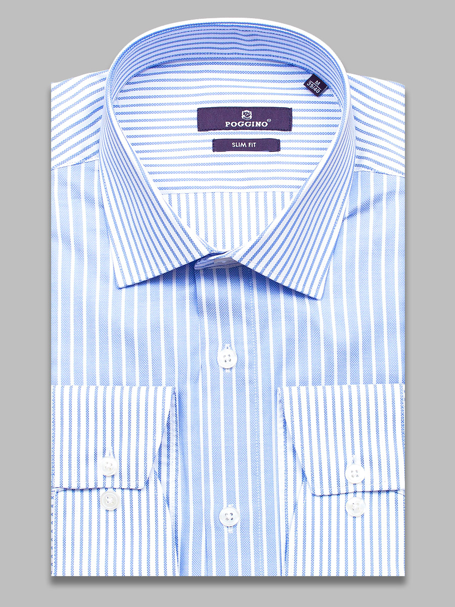 Комбинированная голубая приталенная рубашка в полоску с длинными рукавами