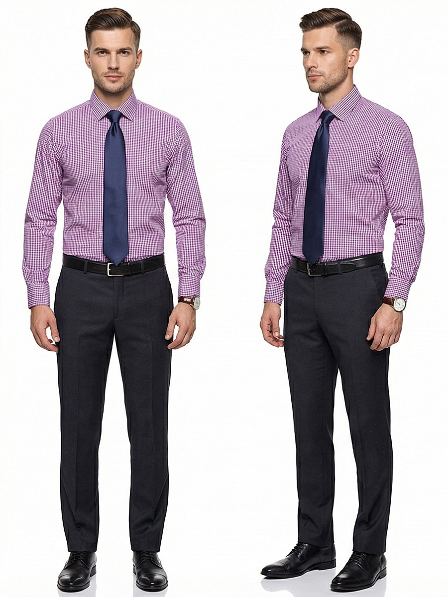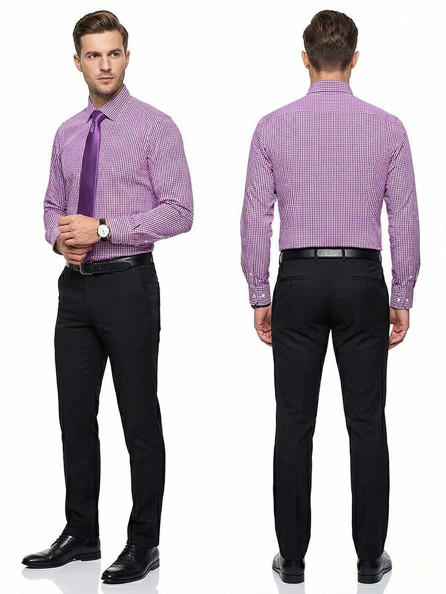Сиреневая приталенная мужская рубашка в клетку с длинными рукавами