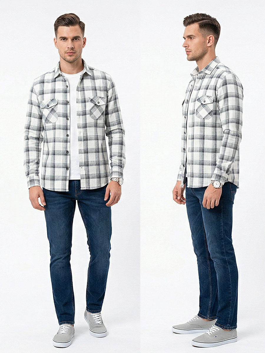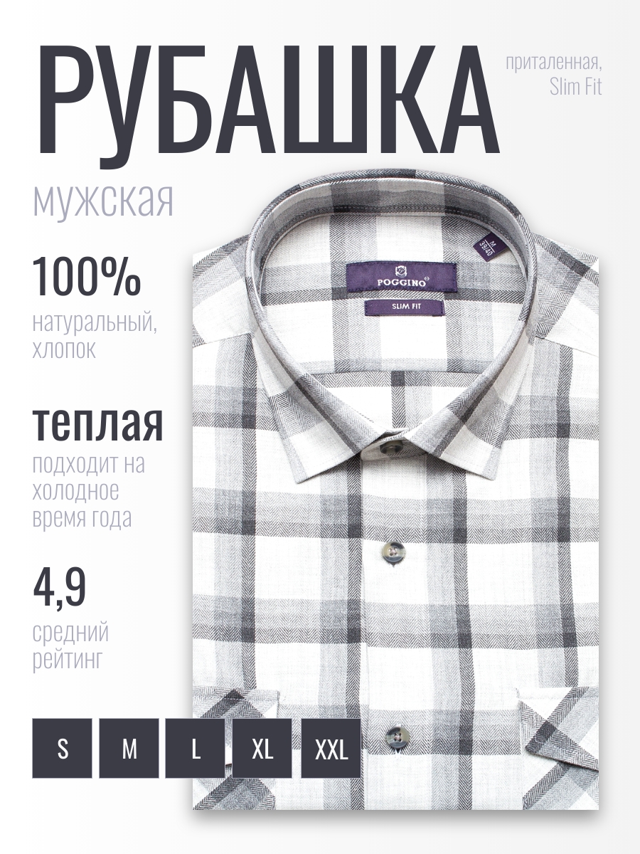 Байковая приталенная мужская рубашка Poggino 1000-07 серого цвета в клетку с длинными рукавами, классическим воротником и двумя нагрудными карманами из натуральной 100% хлопковой ткани. Рубашка Poggino 1000-07: стиль и комфорт в одном изделии Рубашка Poggino 1000-07 выполнена в сером цвете с клетчатым принтом, что придает ей неповторимый и стильный вид. Классический воротник и длинные рукава делают рубашку удобной и функциональной. Натуральная хлопковая ткань Рубашка изготовлена из 100% хлопковой ткани, что гарантирует мягкость, комфорт и долговечность изделия. Натуральная хлопковая ткань обеспечивает отличную воздухопроницаемость и впитывает влагу, что делает рубашку приятной на ощупь и удобной в носке. Прилегающий силуэт рубашки подчеркивает фигуру и делает образ более элегантным. Рубашка Poggino 1000-07 подходит для повседневного использования и сочетается с различными элементами гардероба. Выбирая рубашку Poggino 1000-07, вы получаете стильное, удобное и качественное изделие, которое прослужит вам долгое время и станет незаменимым элементом вашего гардероба.Фотография рубашки в коробке не является публичной офертой, и используется производителем, только в качестве демонстрации изделия с данного ракурса.