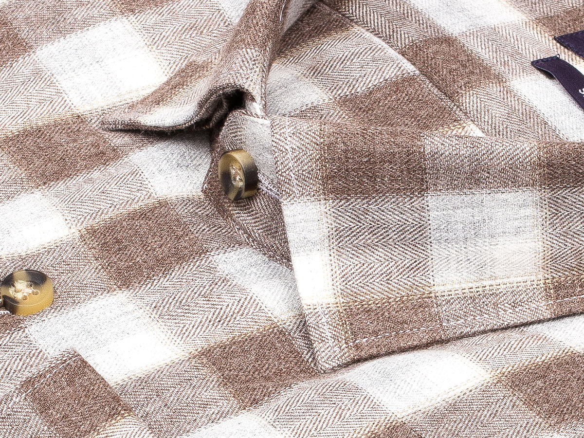 Байковая коричневая приталенная рубашка в клетку с длинными рукавами