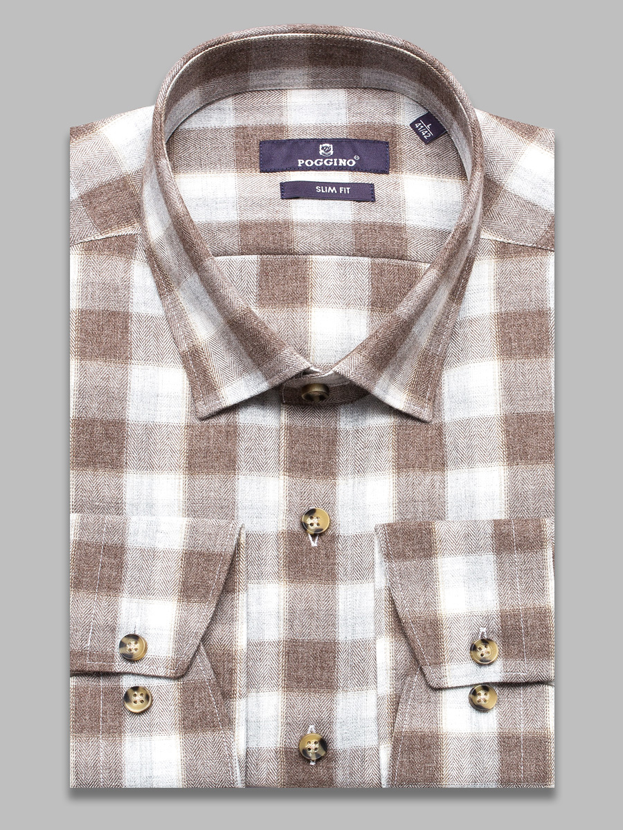 Байковая приталенная мужская рубашка Poggino 1000-18 коричневого цвета в клетку с длинными рукавами и классическим воротником из натуральной 100% хлопковой ткани. Рубашка Poggino 1000-18: стиль и комфорт в одном изделии Рубашка Poggino 1000-18 выполнена в коричневом цвете с клетчатым принтом, что придает ей неповторимый и стильный вид. Классический воротник и длинные рукава делают рубашку удобной и функциональной. Натуральная хлопковая ткань Рубашка изготовлена из 100% хлопковой ткани, что гарантирует мягкость, комфорт и долговечность изделия. Натуральная хлопковая ткань обеспечивает отличную воздухопроницаемость и впитывает влагу, что делает рубашку приятной на ощупь и удобной в носке. Прилегающий силуэт рубашки подчеркивает фигуру и делает образ более элегантным. Рубашка Poggino 1000-18 подходит для повседневного использования и сочетается с различными элементами гардероба. Выбирая рубашку Poggino 1000-18, вы получаете стильное, удобное и качественное изделие, которое прослужит вам долгое время и станет незаменимым элементом вашего гардероба.Фотография рубашки в коробке не является публичной офертой, и используется производителем, только в качестве демонстрации изделия с данного ракурса.