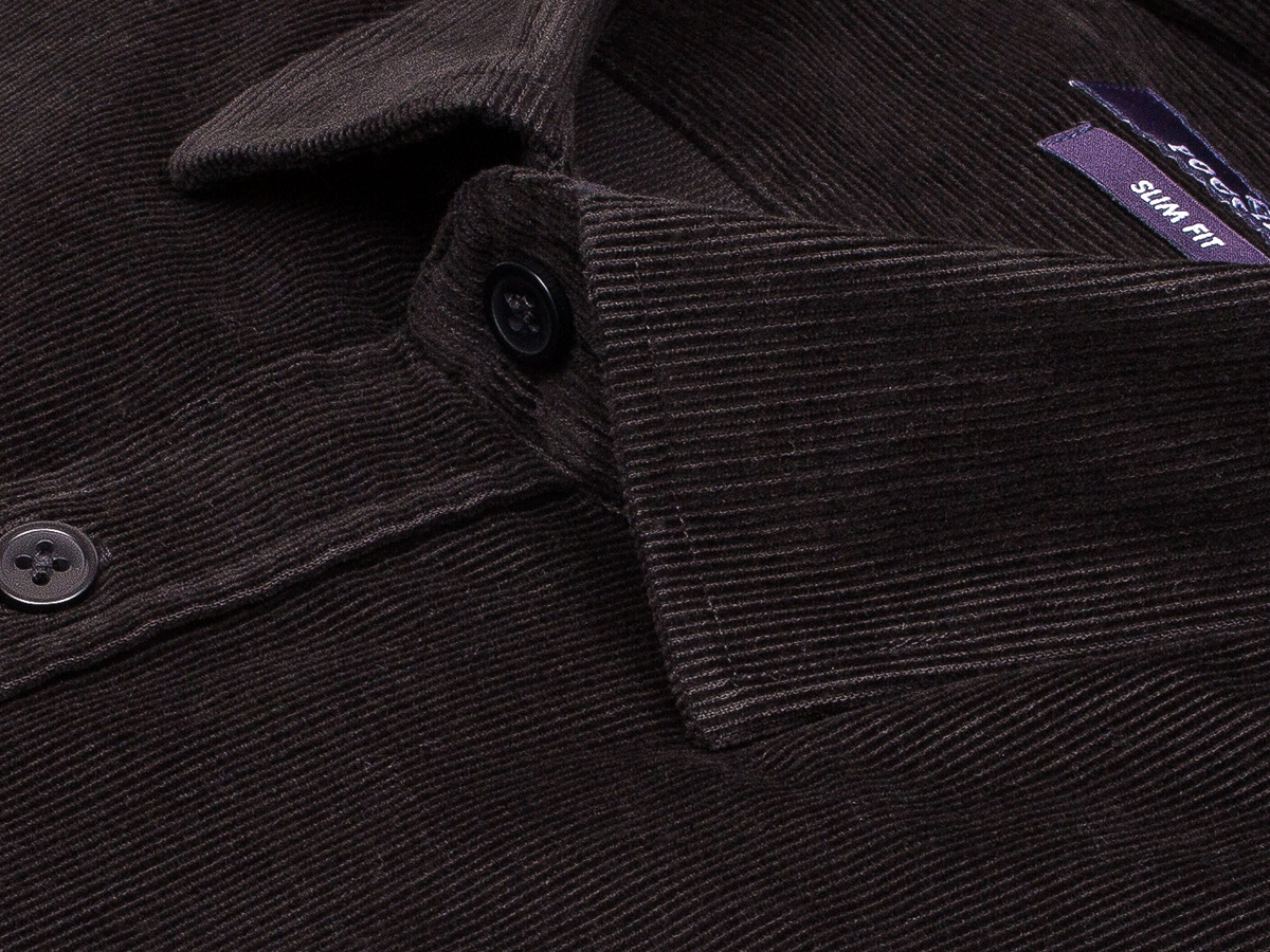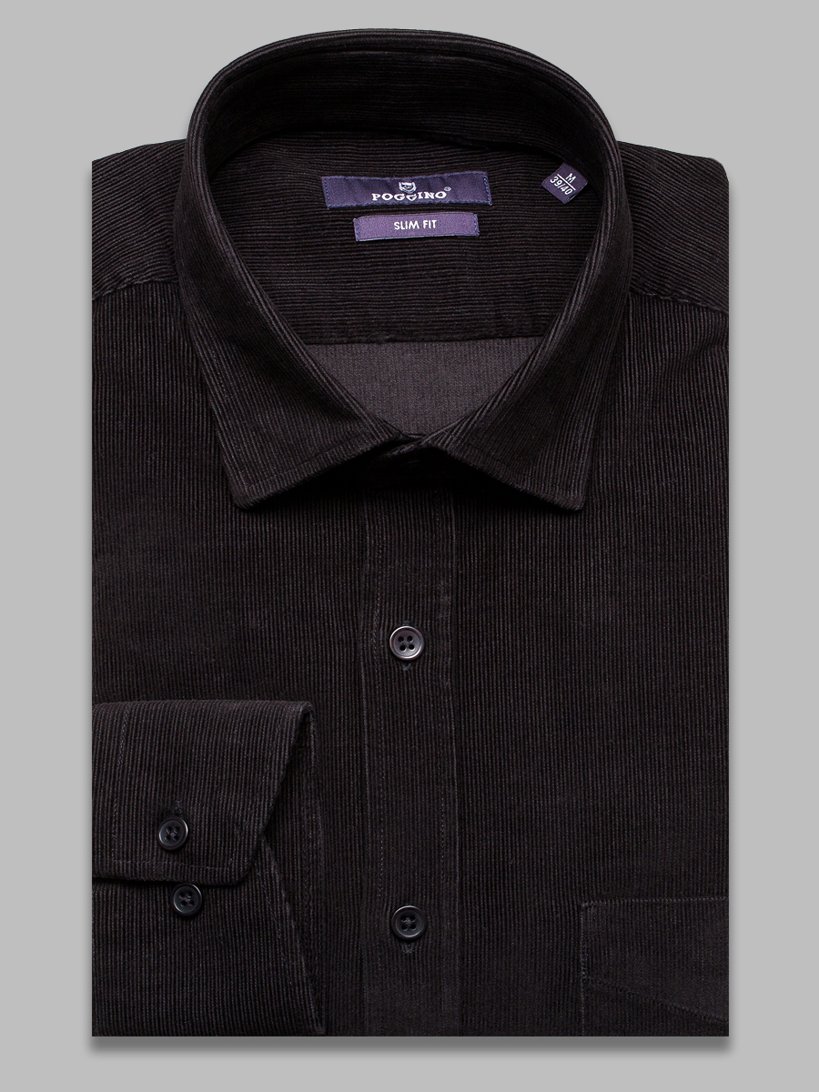 Черная вельветовая приталенная рубашка с длинными рукавами