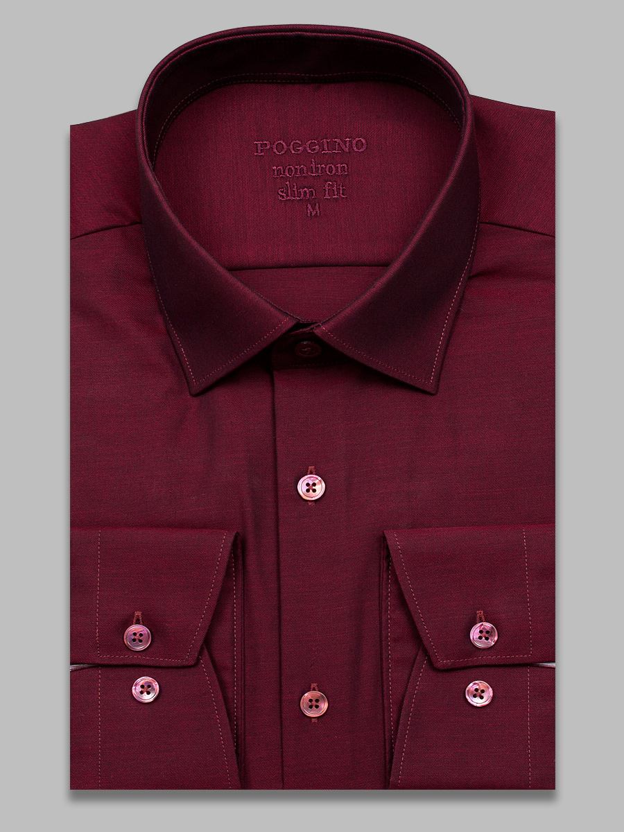 Бордовая мужская рубашка Non Iron с длинными рукавами